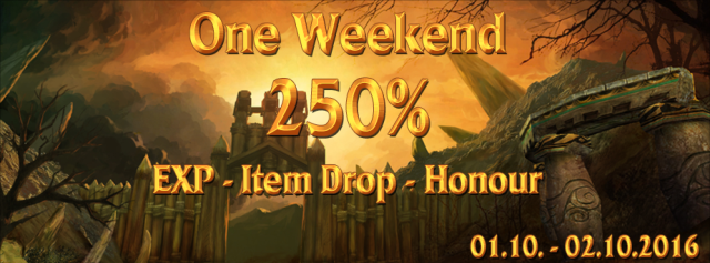 În weekend între 1 și 2 octombrie 2016 veti beneficia de 250% pe EXP, Onoare și Item drop.